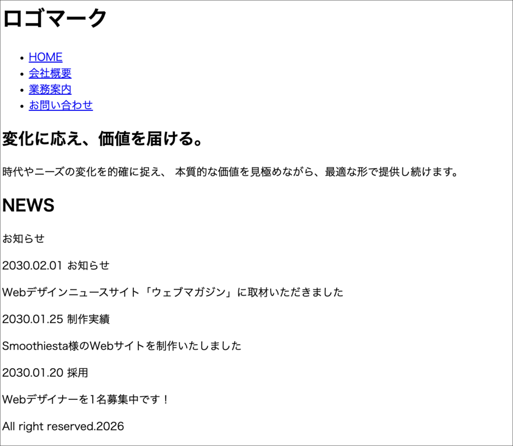 <h1 class="logo">ロゴマーク</h1>
