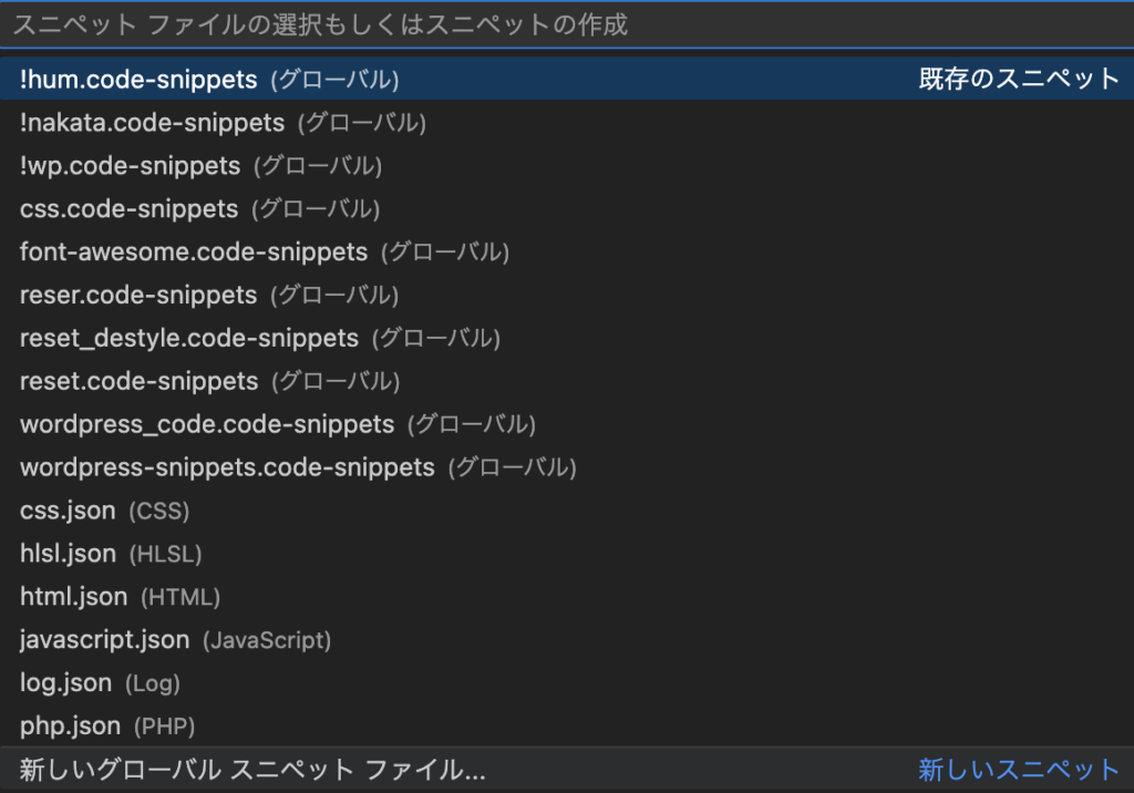 VSCodeでは、ユーザー用のカスタムスニペットを簡単に作成できます。